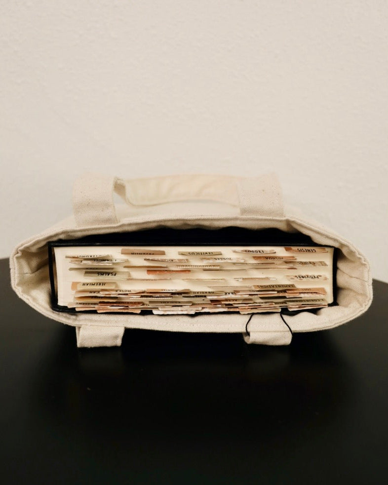 Padded canvas bible or book bag with pen holder